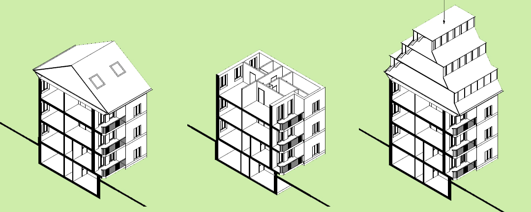 Basel fördert die Nachverdichtung in der Stadt und im ländlichen Raum. Ungenüzter Dachraum kann erweitert werden. Anstatt beispielsweise 150.000 CHF für eine Dachrenovation zu zahlen für 0.0 Rendite, kann das Dach renoviert und gleichzeitig aufgestockt werden bei einem Eigenkapitaleinsatz von 150.000 CHF und 7% Rendite. (Quelle:Basler Dach)
