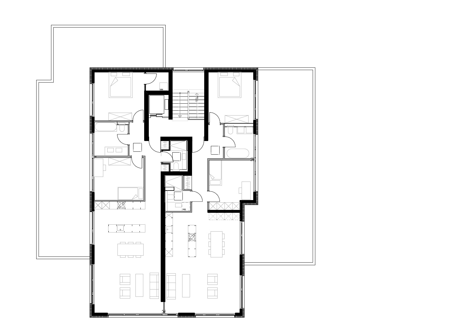 Werkplanung für 2 Mehrfamilienhäuser mit insgesamt 13 Wohnungen. Der Entwurf der Baueingabe wurde nochmals hinsichtlich der Feingestaltung der Fassaden überarbeitet. In dem Projekt übernahm ich die Koordination der Gewerke Heizung, Sanitär und Elektro sowie die Werkstattplanungen. Bis zum Rohbau begleitete ich die Bauausführung und war bei Problemen die Ansprechperson.